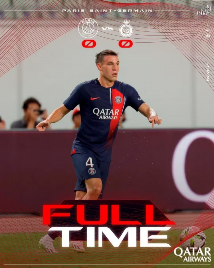 下半场补时3分钟,巴黎0-0利雅得胜利。
