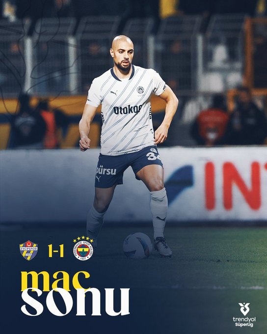 全场比赛结束,费内巴切1-1伊尤斯堡。