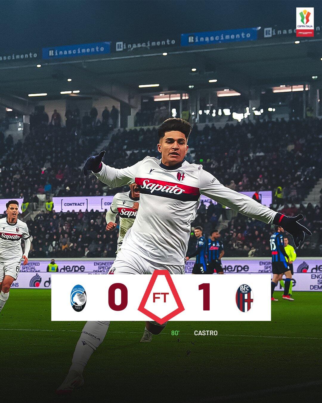 2月5日讯 北京时间4:00,意大利杯1/4决赛,亚特兰大主场对阵博洛尼亚,比赛在阿祖里球场打响!上半场,双方均无建树。下半场,直到第80分钟,替补登场的卡斯特罗一击制胜!最终,博洛尼亚1-0击败亚特兰大,晋级意大利杯4强!