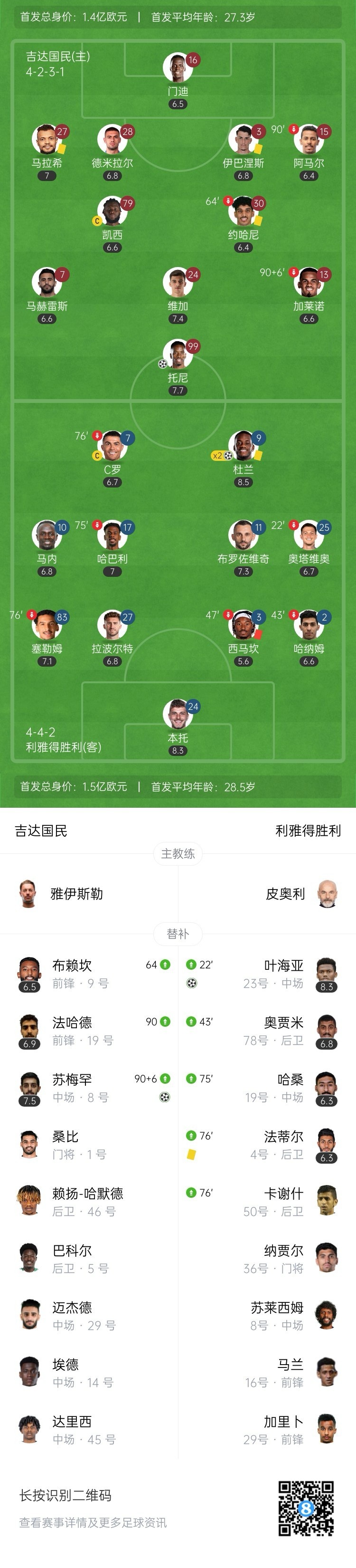 胜利遭扳平!第79分钟,维加左路下底传中,胜利后防盯人不紧,伊万-托尼门前高高跃起头球破门,吉达国民1-1利雅得胜利!↓