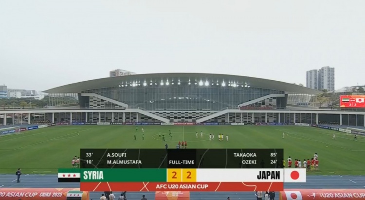全场比赛结束,日本U20队2-2叙利亚U20队。
