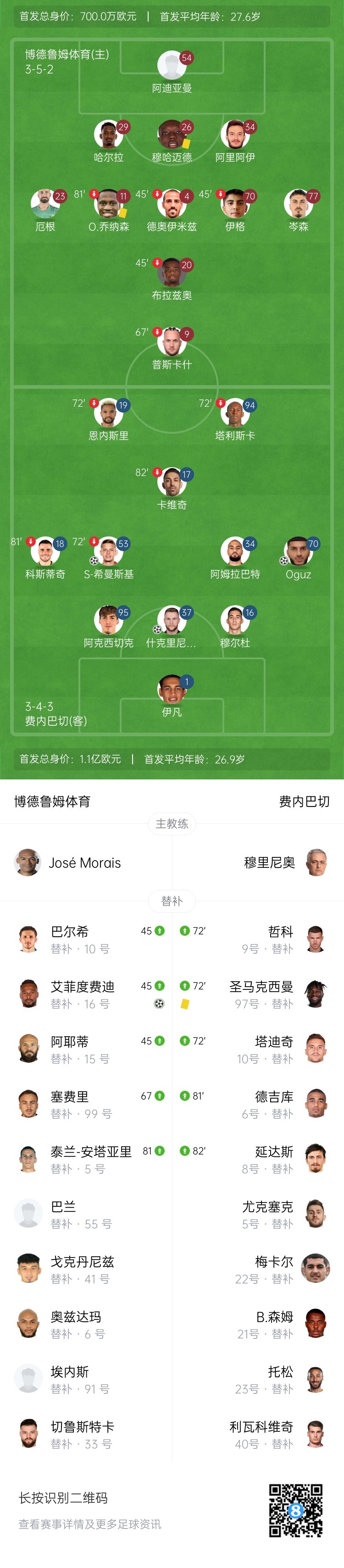 第5分钟,费内巴切右路定位球机会!塔利斯卡直接打门被门将扑出,随后禁区内主队球员未能将球清理出危险区!什克里尼亚尔头球破门!费内巴切1-0博德鲁姆体育↓