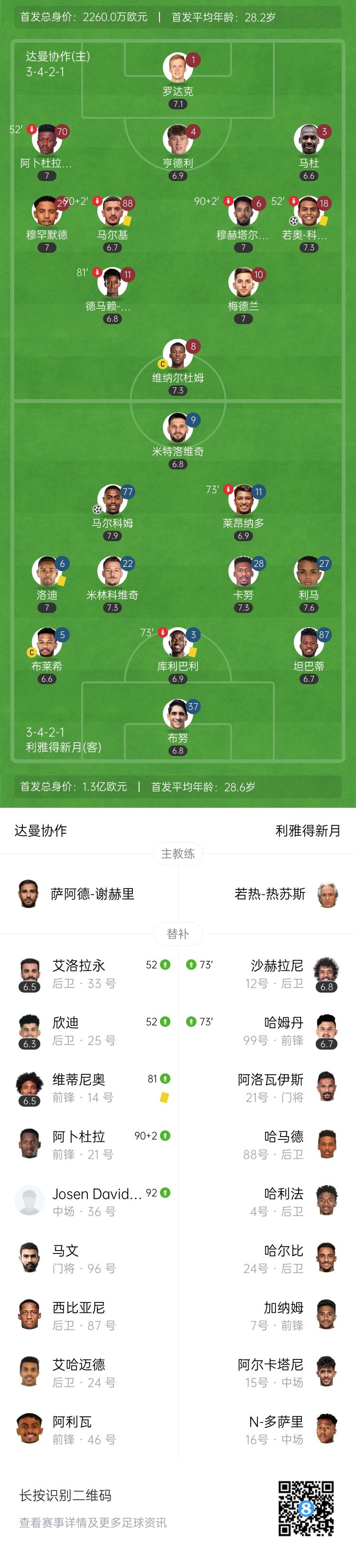 【双方首发及换人信息】