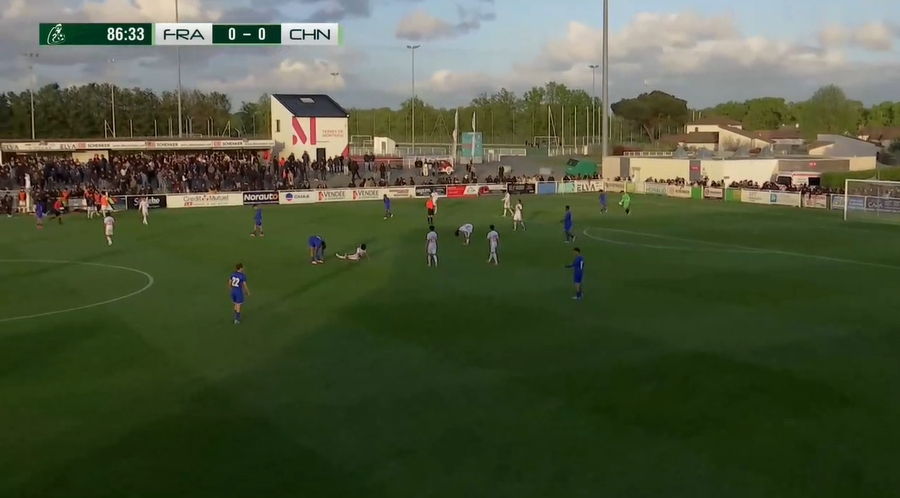04月16日讯 蒙太古U16小组赛A组,中国男足U16对阵法国U16。何思凡半场伤退,邝兆雷失良机,张旭尧关键解围。最终,中国男足U16队0-0战平法国U16。
