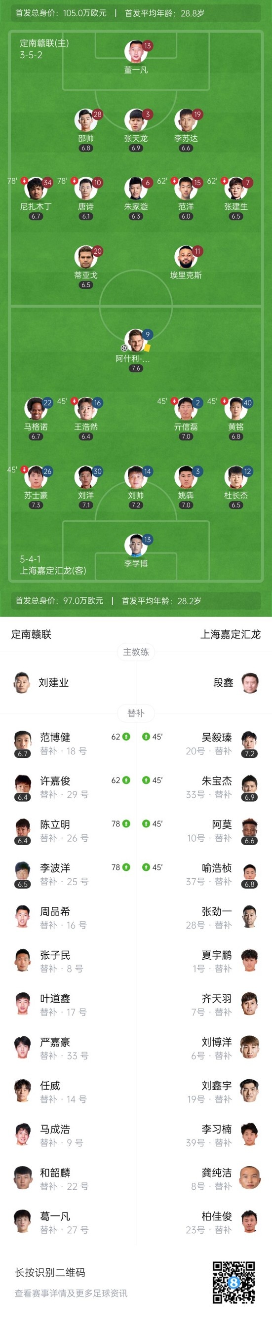 下半场补时6分钟,定南赣联0-1上海嘉定汇龙。