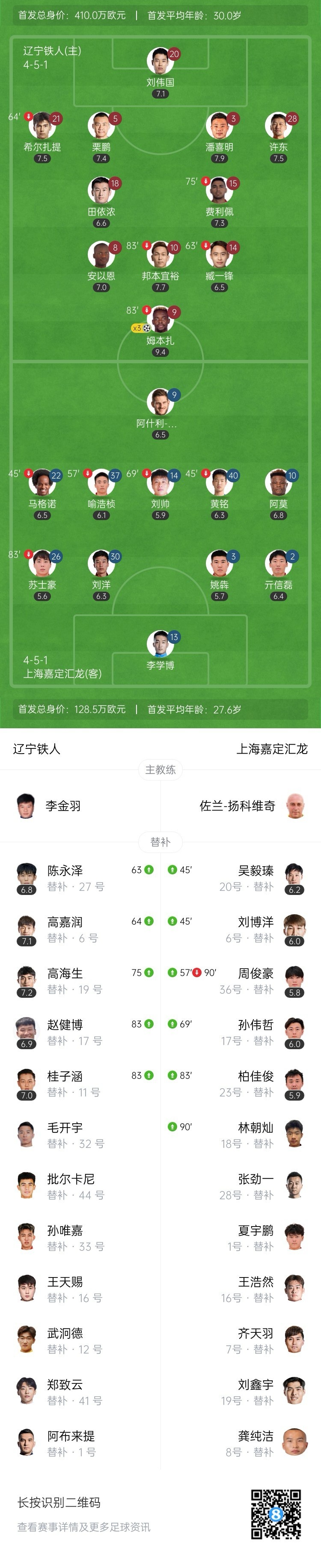姆本扎双响+联赛第13球,邦本宜裕造两球!铁人2球领先!第34分钟,邦本宜裕左路放铲抢断后传中,臧一锋前点头球攻门击中立柱,姆本扎门前补射得手,辽宁铁人2-0上海嘉定汇龙!↓