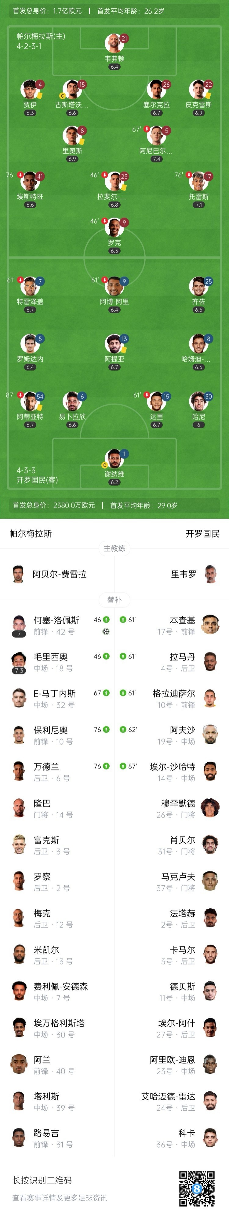 【双方首发以及换人信息】