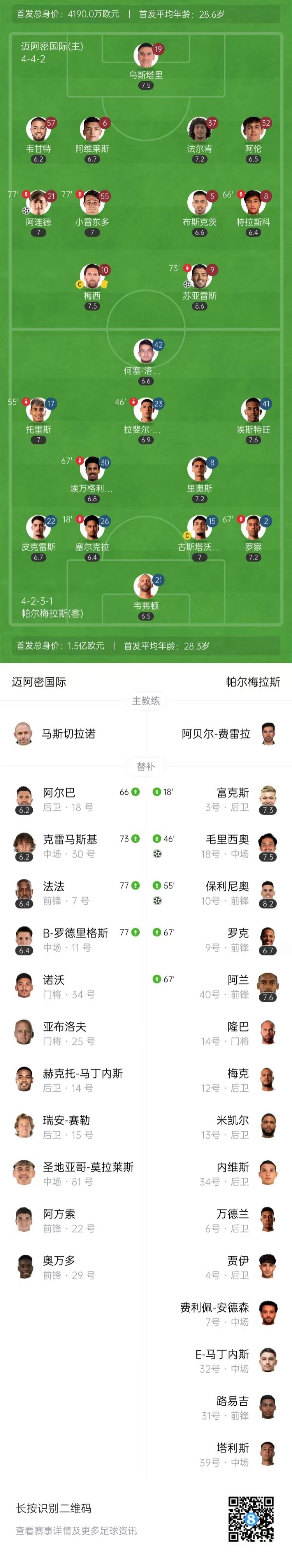 全场比赛结束,迈阿密国际2-2帕尔梅拉斯。