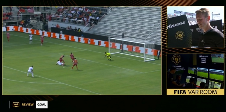 第50分钟,艾因左路传中到禁区,拉巴得球带到底线回做,帕拉西奥斯倒地护球再回做,亚历杭德罗-罗梅罗跟进兜射入网,但VAR介入示意有进攻犯规在先嫌疑,主裁亲自回看认定进球有效,比分改写为艾因2-1领先↓