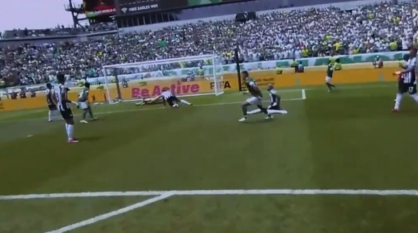 第97分钟,帕尔梅拉斯角球开入禁区,帕尔梅拉斯球员投诉防守球员有手球嫌疑,主裁判示意没有手球。↓