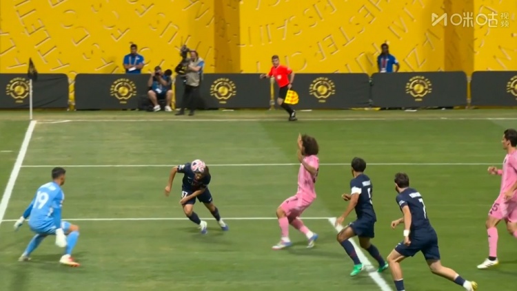 杜埃造阿维莱斯乌龙!第45分钟,杜埃右路下底传中,皮球打在阿维莱斯身上折射,随后飞进自家大门,巴黎圣日耳曼3-0迈阿密国际!↓
