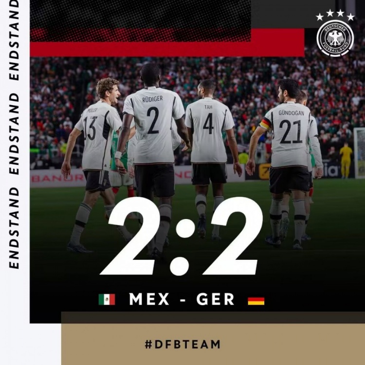 全场比赛结束,德国2-2墨西哥。
