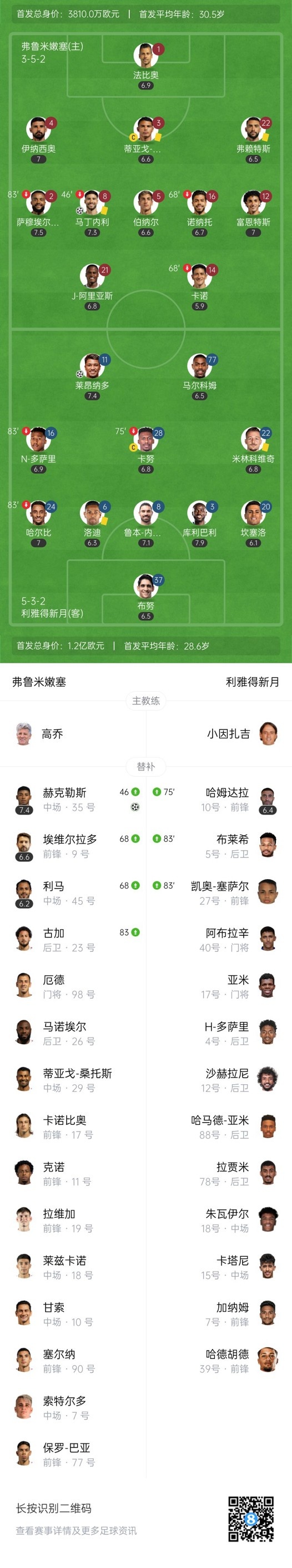 双方首发以及换人信息: